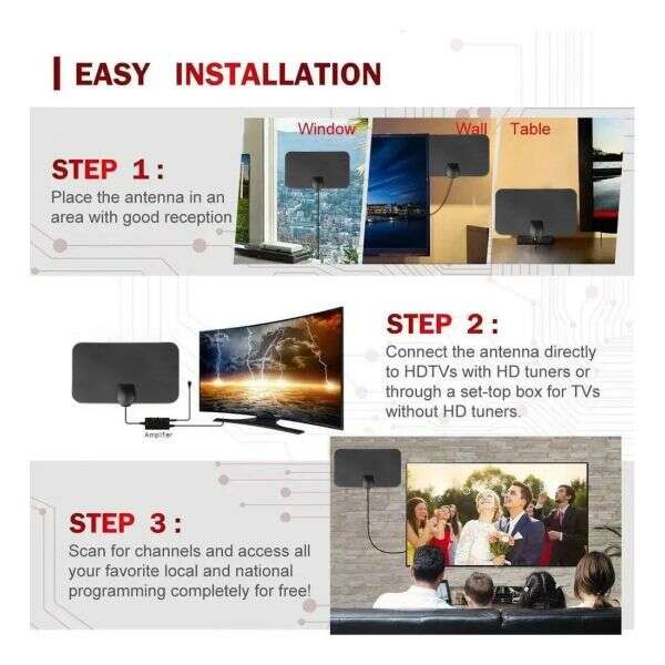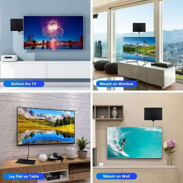 Een binnenantenne die tot 20 verschillende tv-kanalen ontvangt zonder de noodzaak van abonnementen voor kabel of satelliet. Deze antenne is eenvoudig te installeren en te gebruiken, en biedt een kosteneffectieve oplossing voor het ontvangen van televisie-uitzendingen.