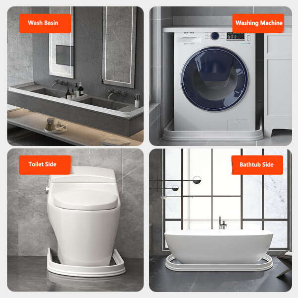 Een set van twee slanke siliconen strips die moeiteloos water rond douches of in de keuken bevatten, waardoor morsen en lekkages worden voorkomen. Deze veelzijdige strips beschermen oppervlakken tegen water- en vloeistofschade en kunnen ook worden gebruikt om tocht, geluid, stof en insecten buiten te houden door ze op deuren te plaatsen.
