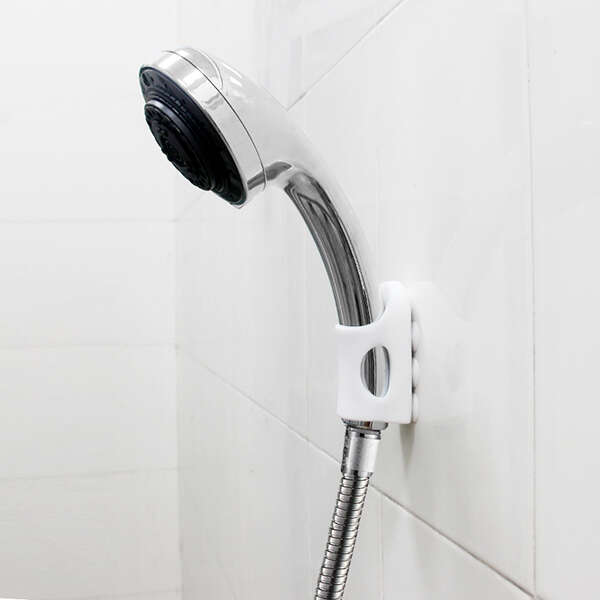 Een eenvoudig te installeren houder voor de douchekop. Ontworpen om de douchekop in een stabiele en stevige positie te houden, maakt deze houder het mogelijk om de douchekop aan te passen voor douchen, haren wassen, of het baden van kinderen en huisdieren. De houder heeft een lichtblauwe kleur en kan met een siliconen houder op elk gewenst oppervlak worden bevestigd.